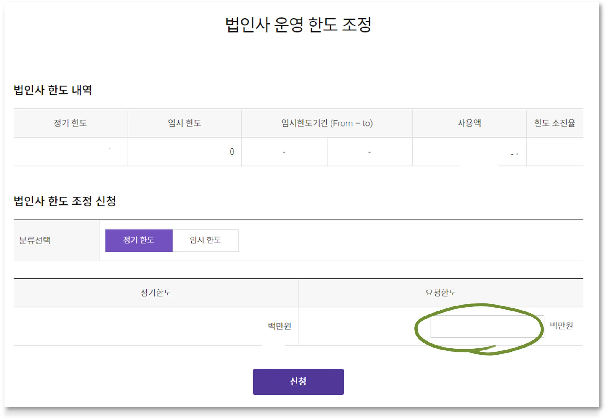 Step 1. 롯데카드 홈페이지에 요청한도 입력