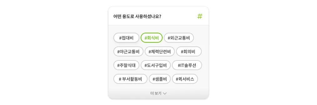카드 우측 상단의 [모든 내역] 버튼을 클릭하여 제출한 용도별로 이용금액의 합계를 보실 수도 있습니다.